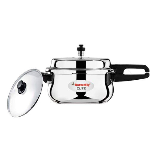 Butterfly Stainless Steel Cute Pressure Cooker with Glass Lid | Induction Compatible | Silver