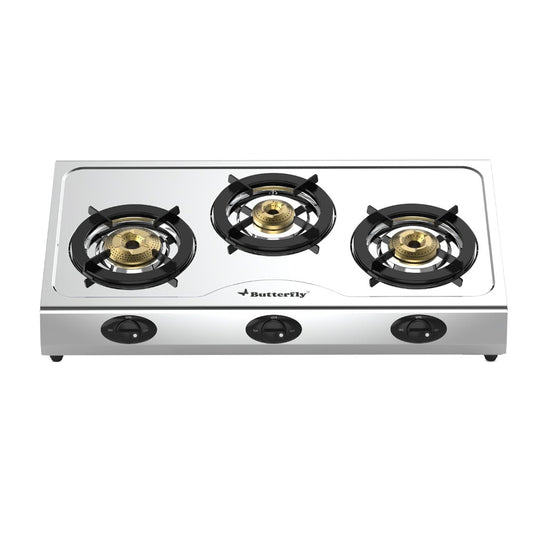 Butterfly Bolt Stainless Steel 3 Burner LPG Gas Stove | Manual | Silver