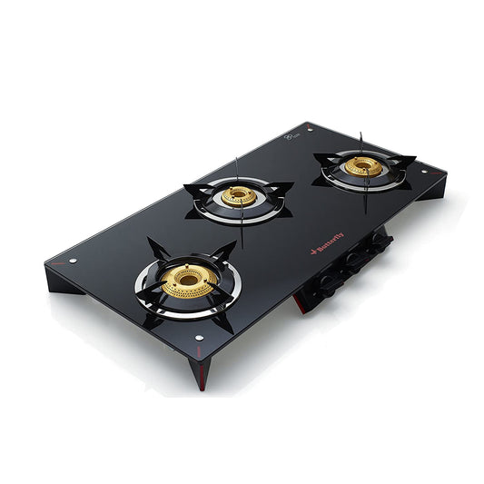 Butterfly Prism Glass 3 Burner Gas Stove | Black