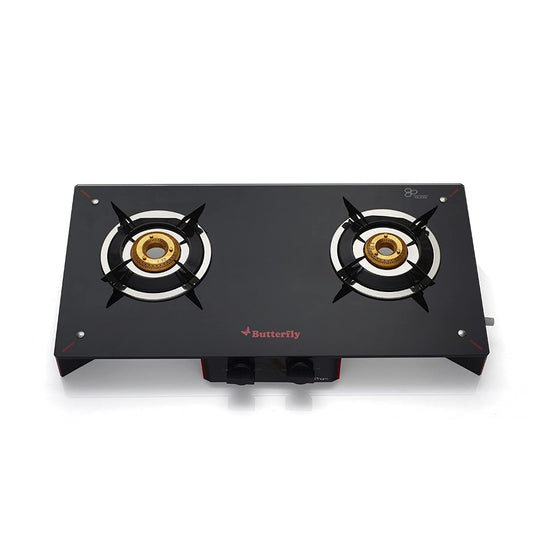 Butterfly Prism Glass 2 Burner Gas Stove | Black