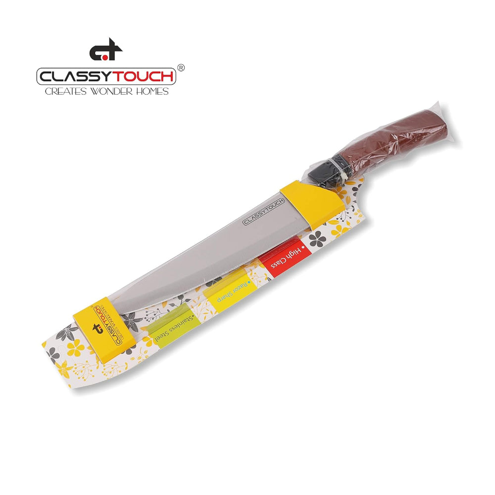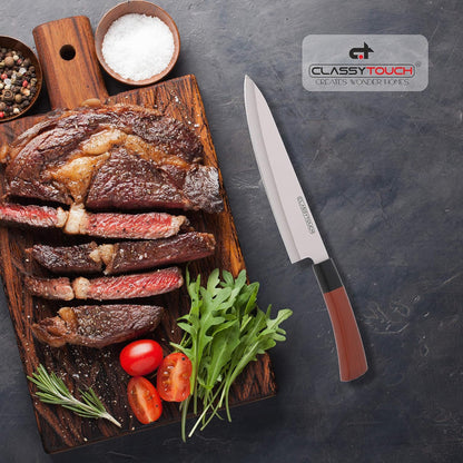 Classy Touch Stainless Steel Chef Knife with Wood Textured ABS Plastic Handle | Brown