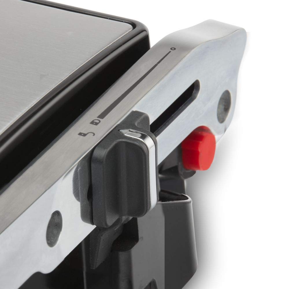 • Slide-Type Locking Handle: Locks the plates in place for uniform pressure and evenly grilled sandwiches.