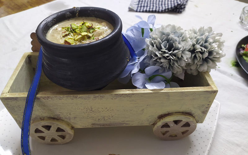- Now take a serving vessel and add Kheer and garnish with pistachio and then serve it