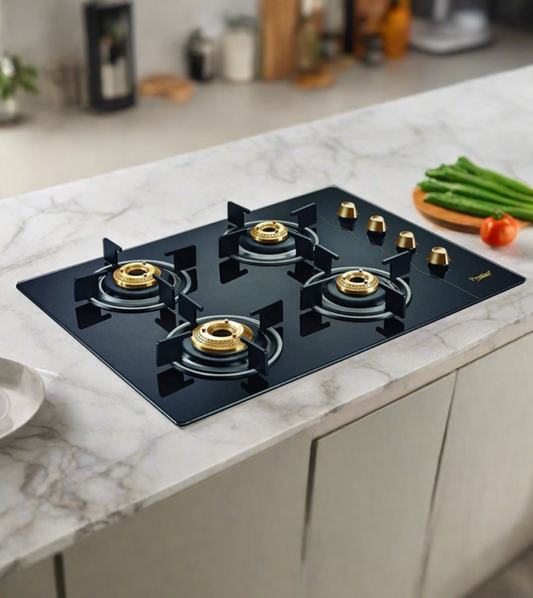 Prestige Euro Glass Top 4 Burners Gas Stove With Toughened Glass Top | Black