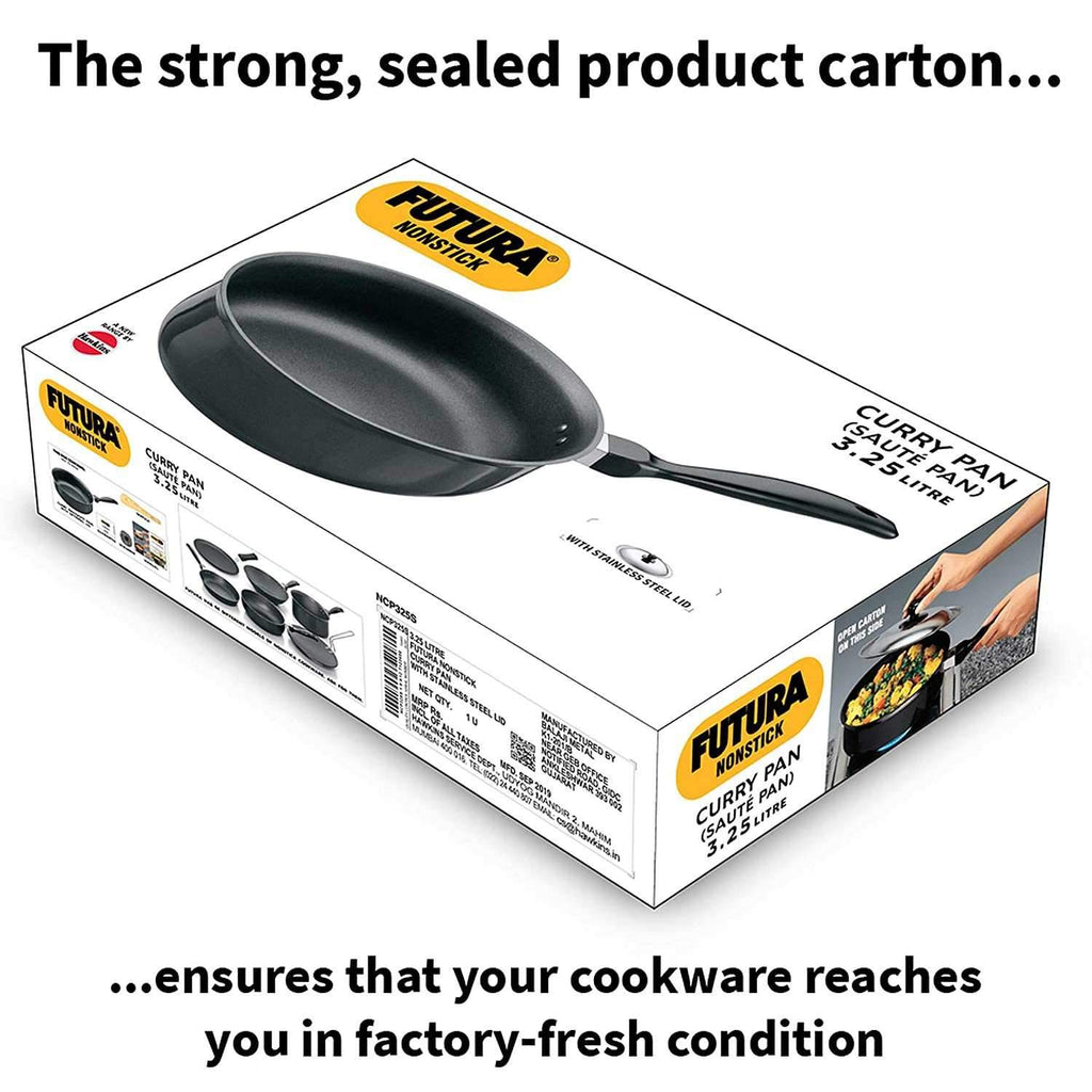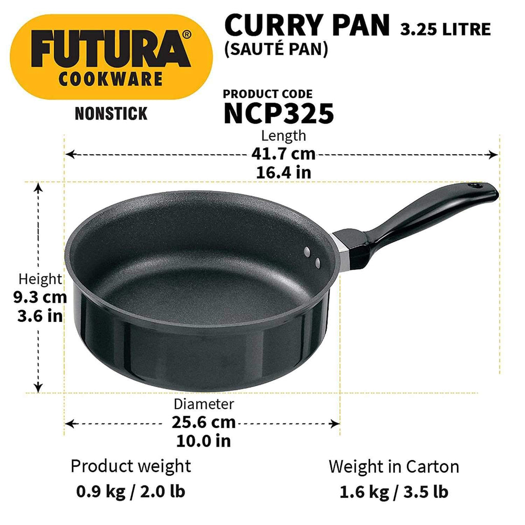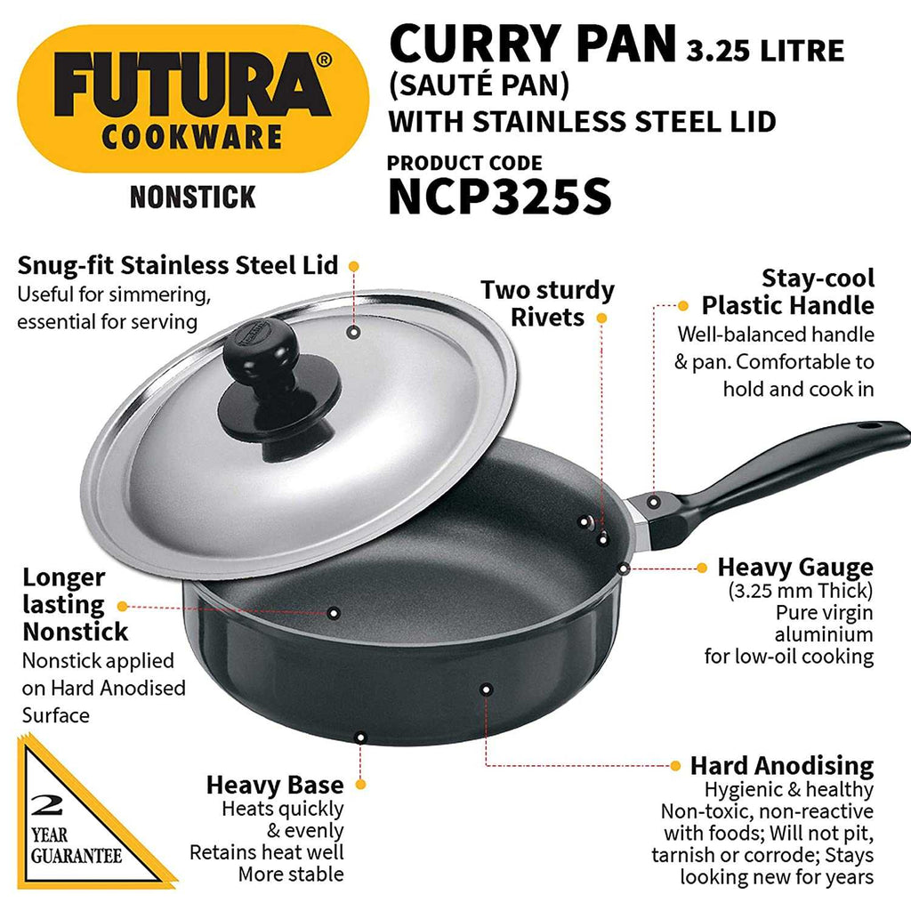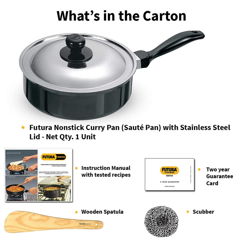 - Package Contents: 1-Piece Futura Non-Stick Saut Curry Pan with Lid or without Lid (2 Litres / 3.25 Litres)
