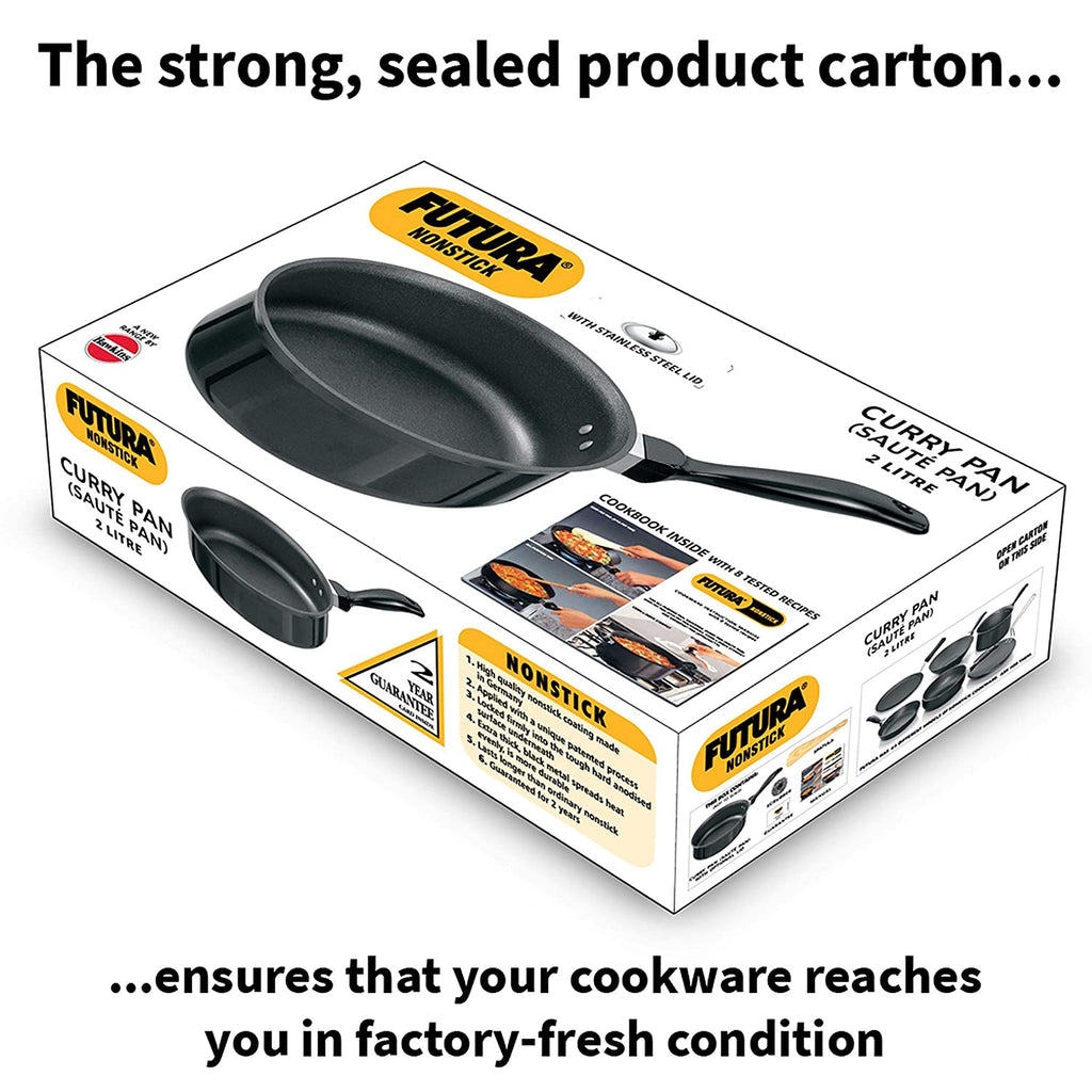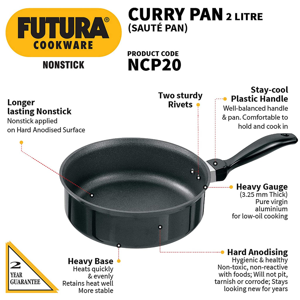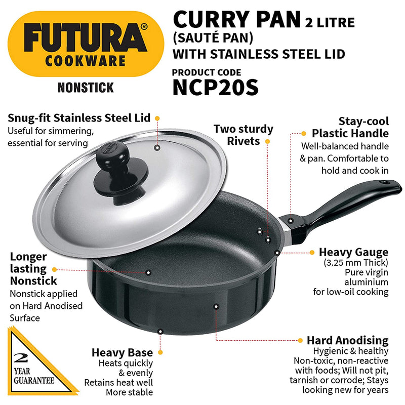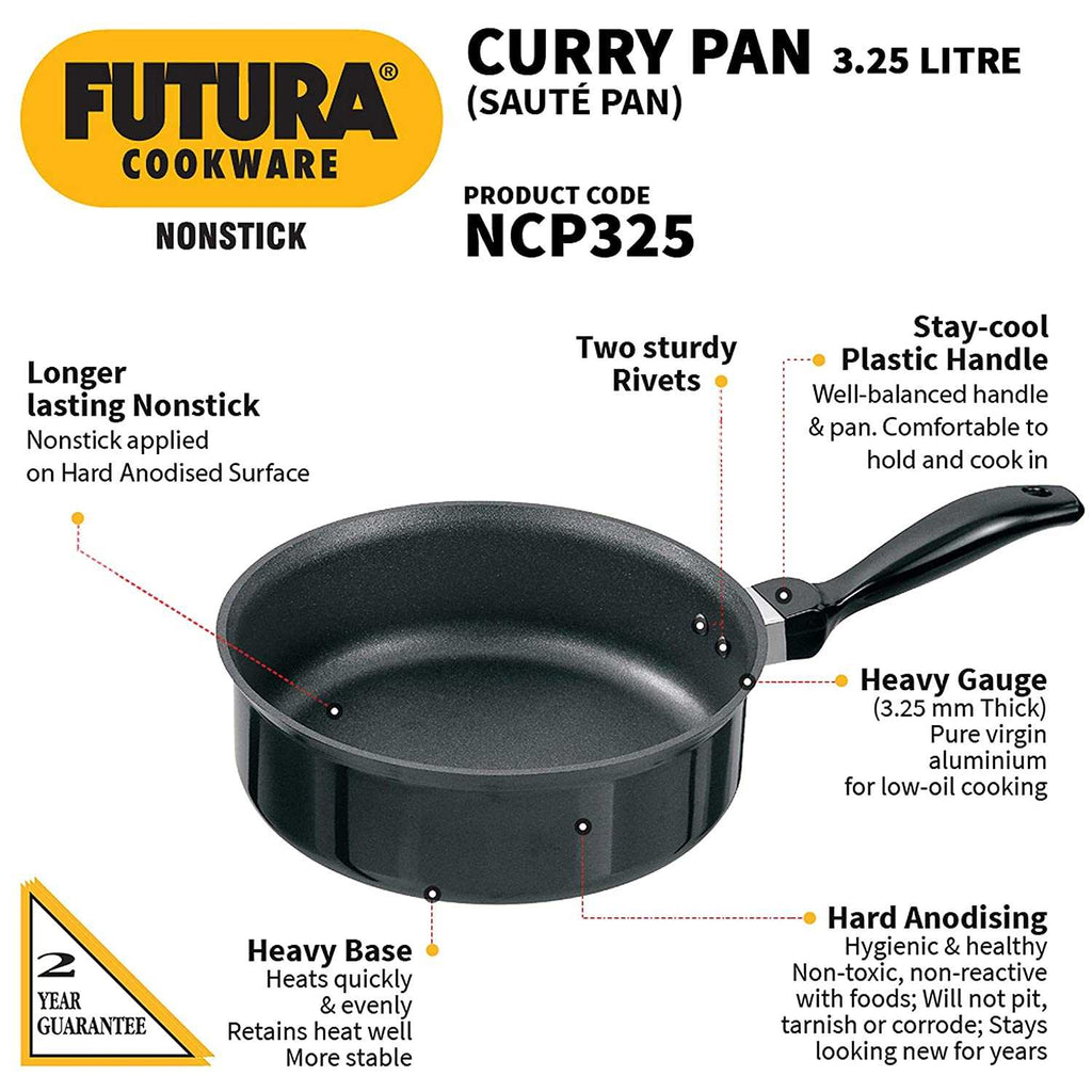 - Package Contents: 1-Piece Futura Non-Stick Saut Curry Pan with Lid or without Lid (2 Litres / 3.25 Litres)