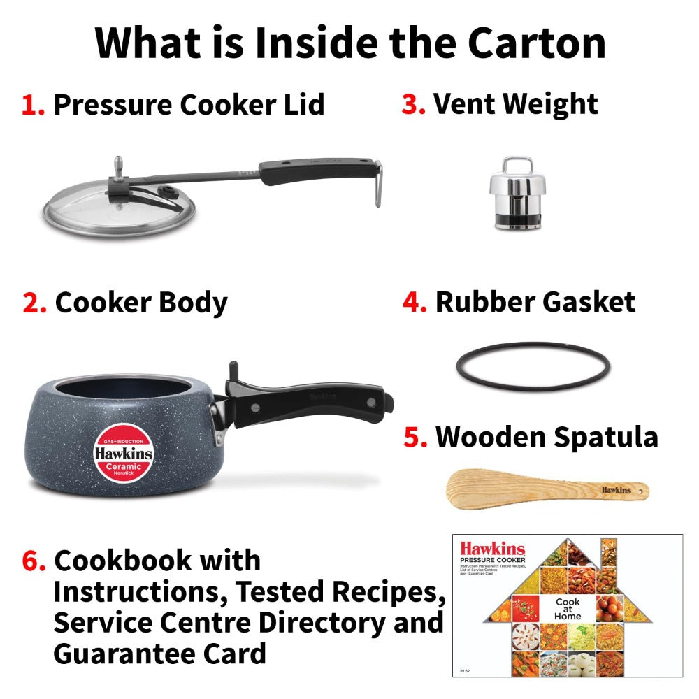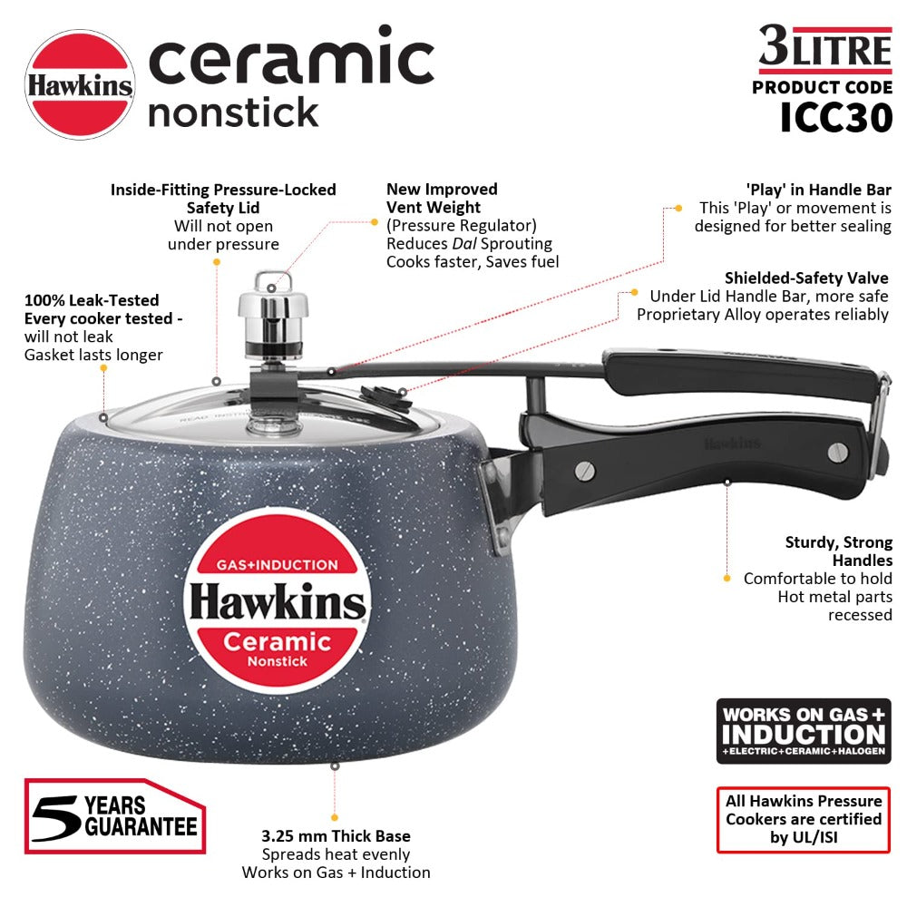 Hawkins Ceramic Nonstick Pressure Cooker | Gas & Induction Compatible | Grey