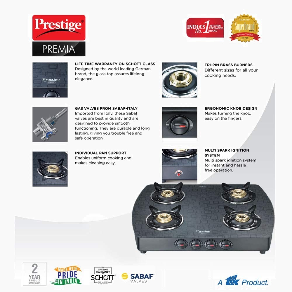Prestige Premia SCHOTT Glass Top Gas Stove GTS 4(D) Checks Design