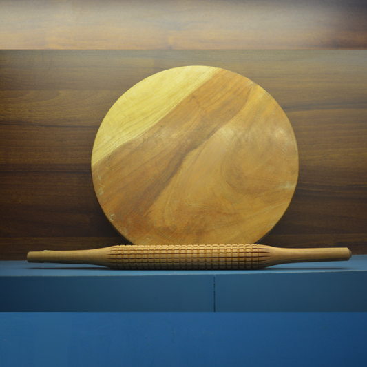 केवीजी सागौन लकड़ी पोलपट बेलन के साथ | रोटी चकला | रोटी पाटला | भूरा