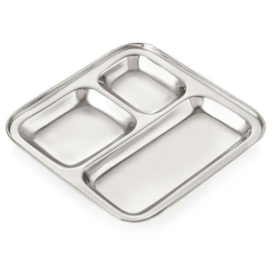 सॉफ्टेल स्टेनलेस स्टील 3 इन 1 पार्टीशन प्लेट | लंच, डिनर, ऑफिस कैंटीन, सामुदायिक रसोई के लिए बिल्कुल सही | चाँदी | 1 पीसी
