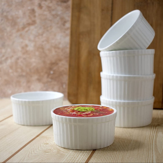 क्ले क्राफ्ट सिरेमिक 180 एमएल रैमेकिन बाउल | पकाना या परोसना | सफ़ेद | 6 पीस का सेट