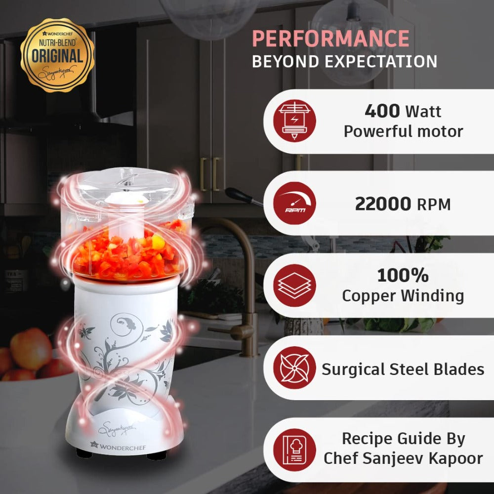 शक्तिशाली मोटर: कॉम्पैक्ट लेकिन शक्तिशाली मशीन 22,000 आरपीएम की अविश्वसनीय रूप से उच्च गति के कारण सबसे कठिन चटनी और मसालों को पीसती है, जो सामान्य मिक्सर ग्राइंडर की तुलना में लगभग दोगुनी है।