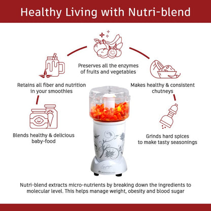 - भारत का पसंदीदा मिक्सर-ग्राइंडर-ब्लेंडर, न्यूट्री-ब्लेंड, बेहतर प्रदर्शन और शानदार स्टाइल का सही संयोजन है जो आपकी रसोई में सुंदरता जोड़ता है।
