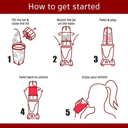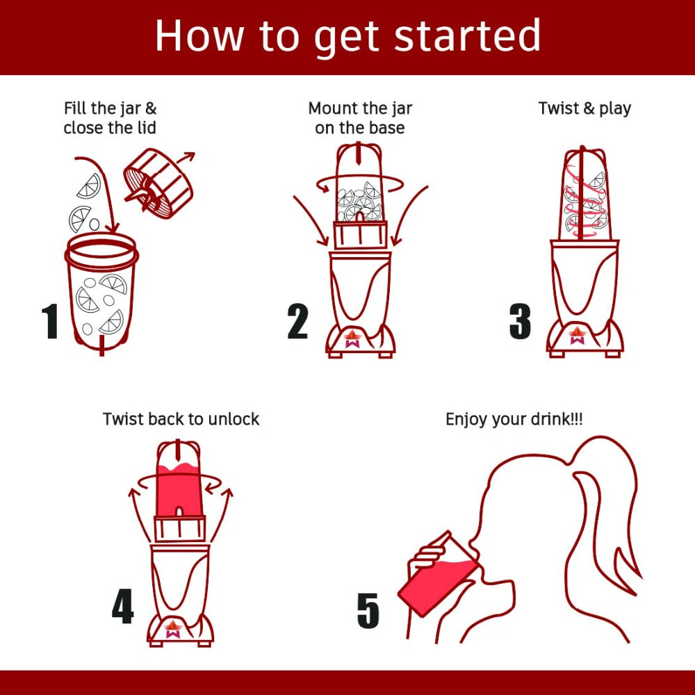 पारदर्शी और अटूट जार: अटूट पॉलीकार्बोनेट जार आपको अंदर देखने में सक्षम बनाते हैं, इसलिए आपको परिणाम जांचने के लिए ढक्कन खोलने की आवश्यकता नहीं है। सरल ऑपरेशन - कोई बटन नहीं - सभी प्रकार की चटनी, शेक, स्मूदी और मसाला बनाने के लिए बस प्लेस, ट्विस्ट और प्ले करें!