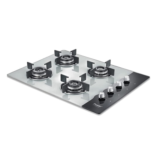 प्रेस्टीज यूरो ग्लास टॉप 4 बर्नर गैस स्टोव टफन्ड ग्लास टॉप के साथ | काला