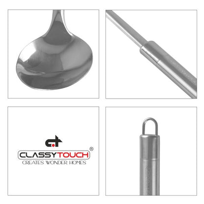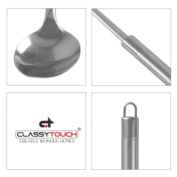 - करछुल की लंबाई 13 इंच है, यह रसोई में सूप या स्टू बनाने के लिए एक आदर्श रसोई उपकरण है। तरल भोजन जैसे सॉस, सूप, स्टू, गर्म वाइन और बहुत कुछ के लिए उपयुक्त।