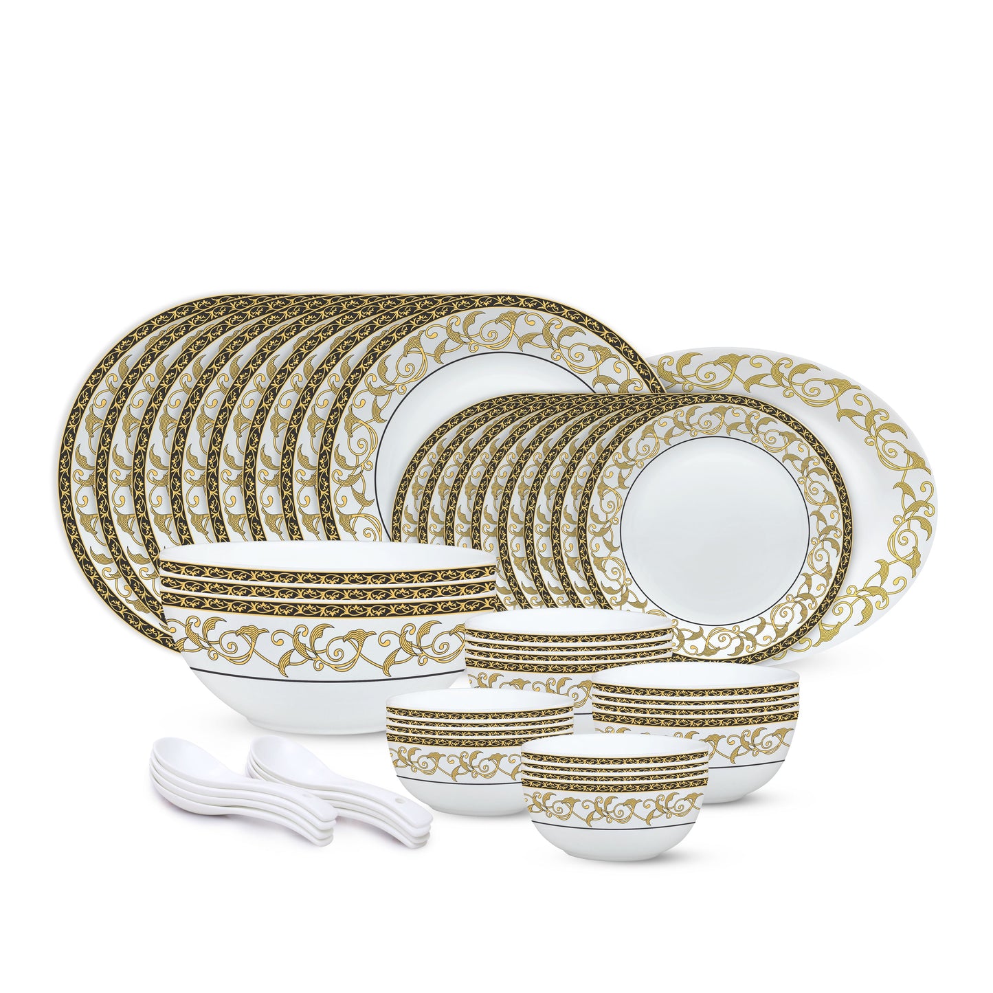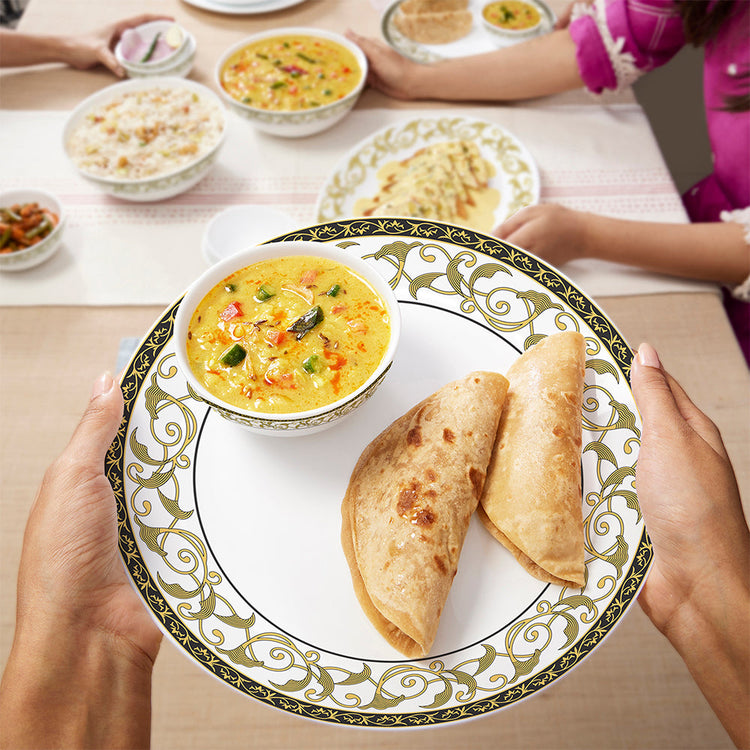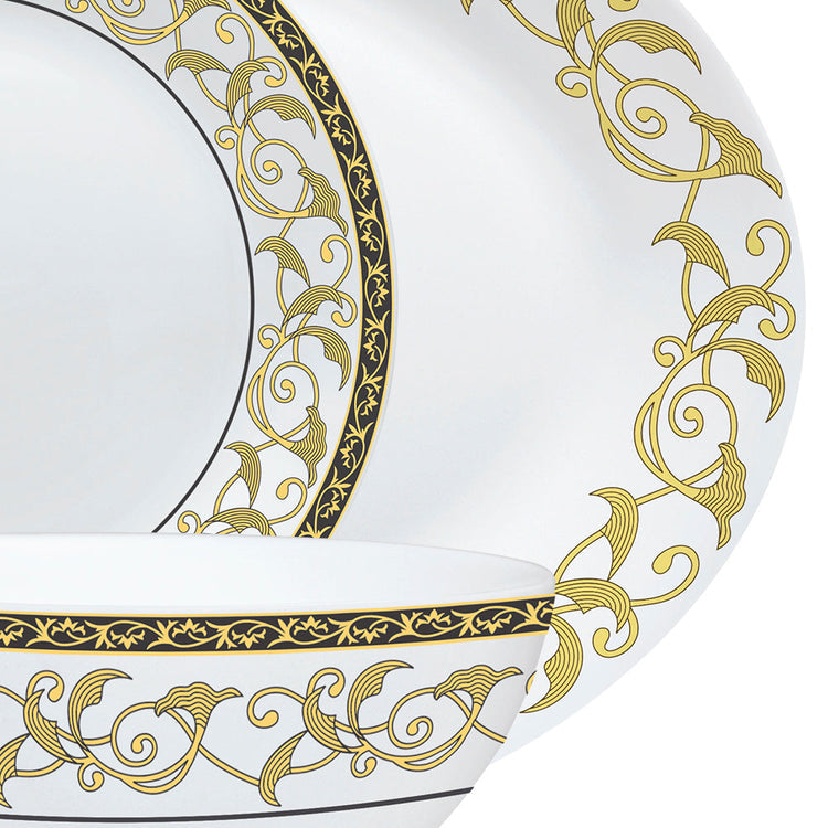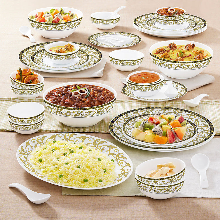 Larah by Borosil - Royale Kohinoor Series Opalware Dinner Set | Set of 33 Pcs