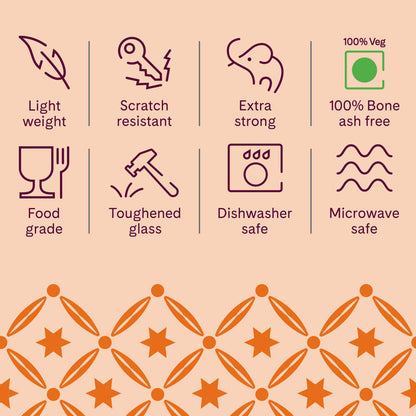 • BONE-ASH FREE, 100% VEGETARIAN DINNER SET: Our entire dinner sets range are thoughtfully crafted to be completely free of any animal-derived components. Unlike traditional dinner sets, our products do not contain any bone-ash, making them the perfect choice for strict vegetarians. Enjoy your meals with peace of mind, knowing that our dinner set is truly vegetarian-friendly.