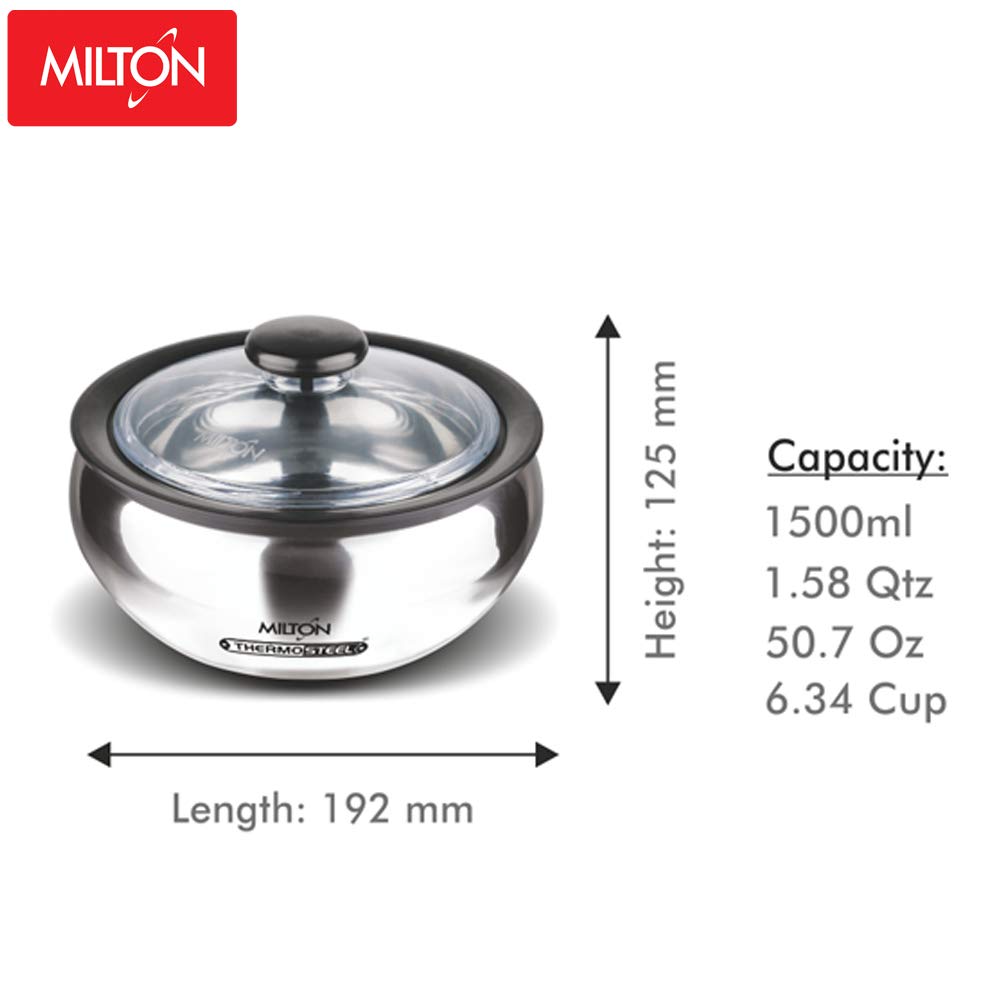- पैकेज सामग्री: 1-पीस मिल्टन क्लियरस्टील कैसरोल (1.5 लीटर)