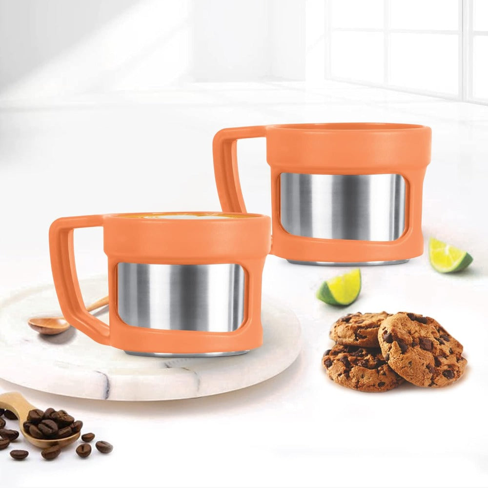 • आरामदायक पकड़ वाले हैंडल के साथ स्टेनलेस स्टील डबल वॉल मग।