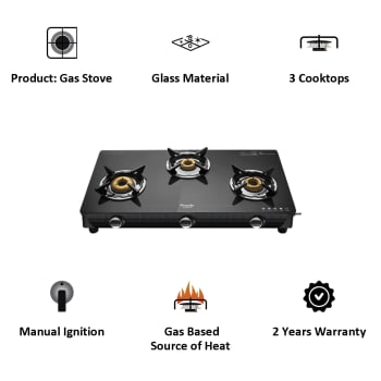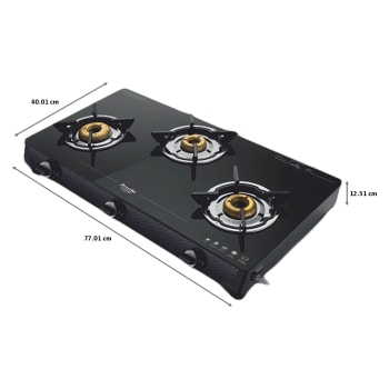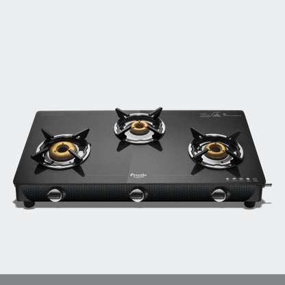 Preethi Valentino कार्बन 3 बर्नर ग्लास गैस स्टोव (काला)