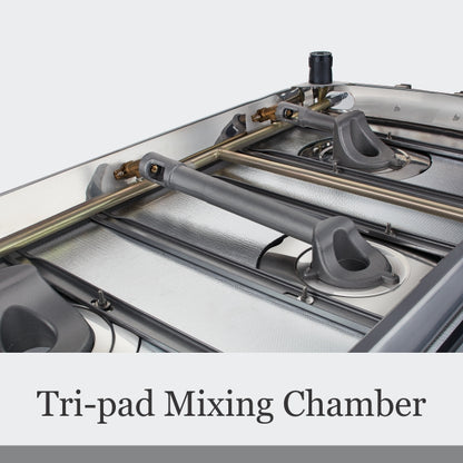 - ट्रायड नोजल डिज़ाइन: गैस ट्यूब को 3 तरफ से जोड़ने का प्रावधान