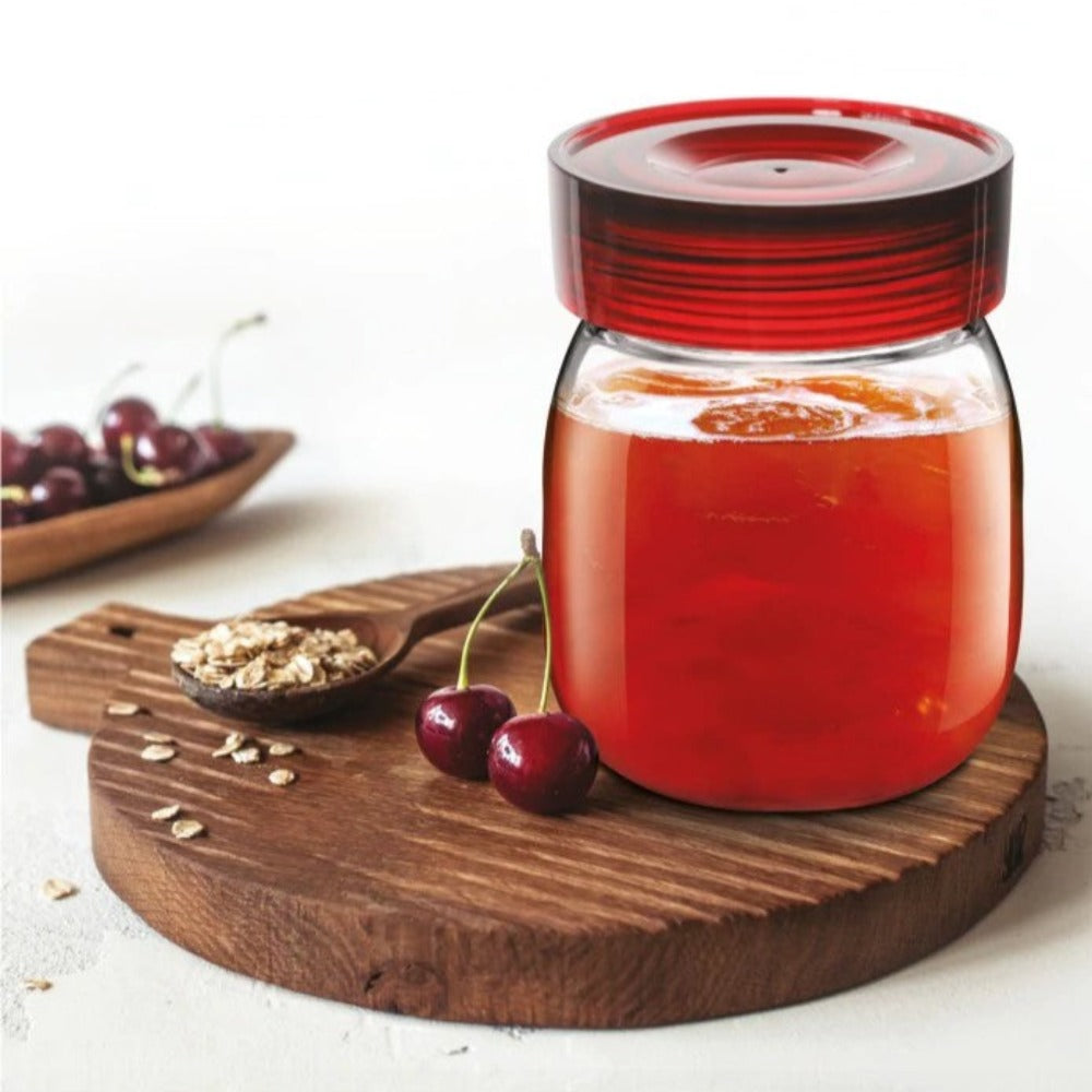 - एक वायुरोधी ढक्कन के साथ बहुउद्देशीय भंडारण के लिए उपयुक्त, इस जार का उपयोग माइक्रोवेव ओवन में भी किया जा सकता है।