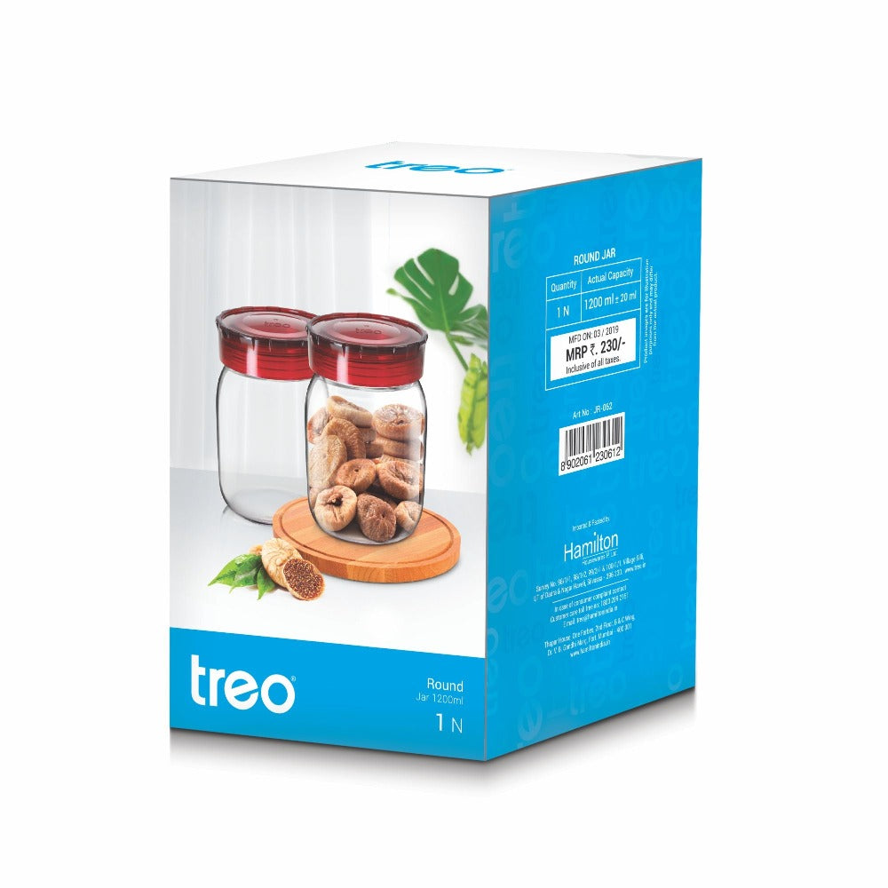 ट्रेओ गोल ग्लास स्टोरेज जार | पारदर्शी | 1 पीसी