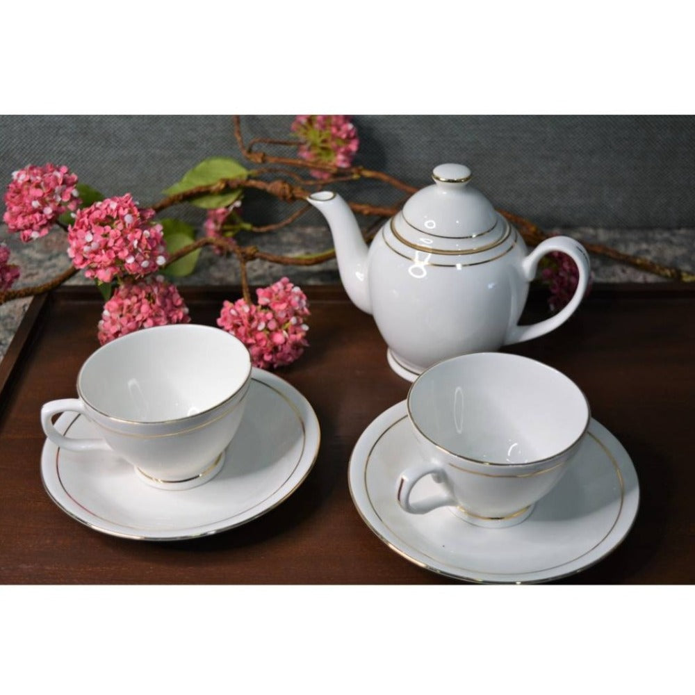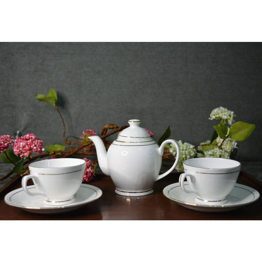ओएसिस इटालियन चहाचा सेट - 1 टीपॉट + 2 कप + 2 सॉसर | पांढरा | 5 पीसीचा संच