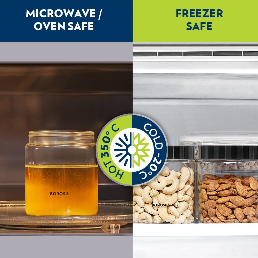 - ओव्हन-प्रूफ, फ्रीझर-प्रूफ आणि अत्यंत तापमान प्रतिरोधक या जार स्नॅक्स फ्रेश करण्यासाठी मायक्रोवेव्हमध्ये (झाकण न ठेवता) सरळ ठेवल्या जाऊ शकतात, प्युरी गोठवण्यासाठी वापरल्या जातात आणि नंतर वापरण्यापूर्वी मायक्रोवेव्हमध्ये वितळतात आणि अर्थातच, नियमितपणे साठवण्यासाठी. कडधान्ये आणि धान्ये यासारखे अन्नपदार्थ.