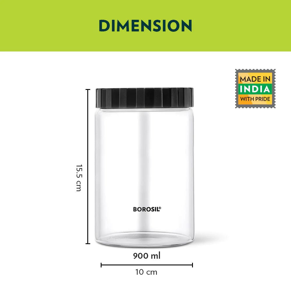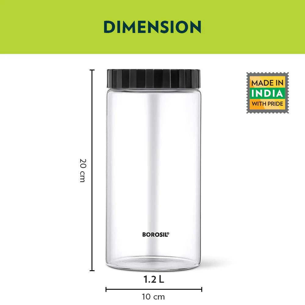 पीपी ब्लॅक लिडसह बोरोसिल एंडुरा एअरटाइट ग्लास स्टोरेज जार | पारदर्शक | 1 पीसी