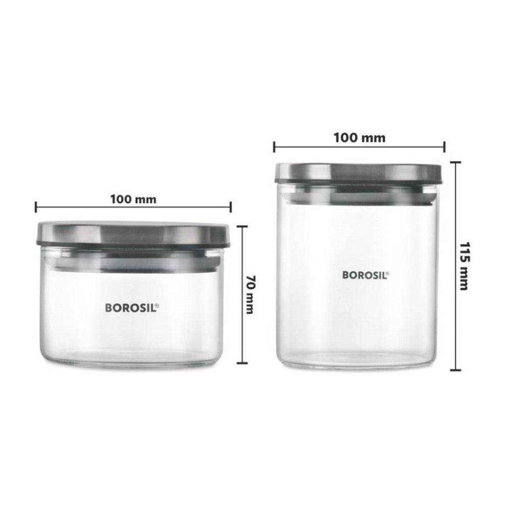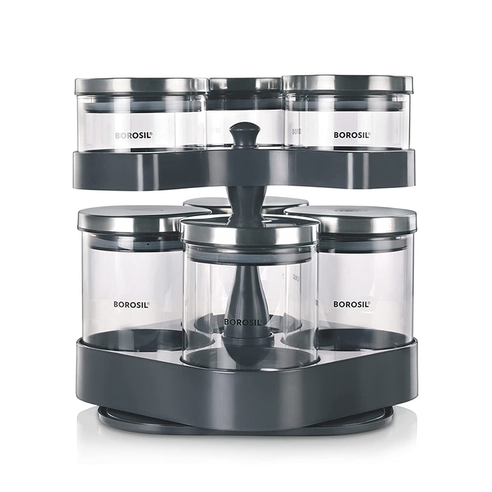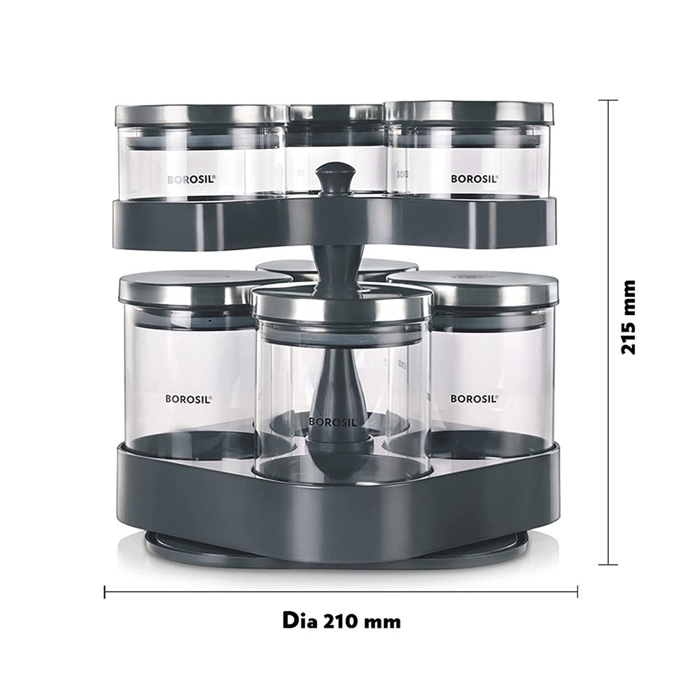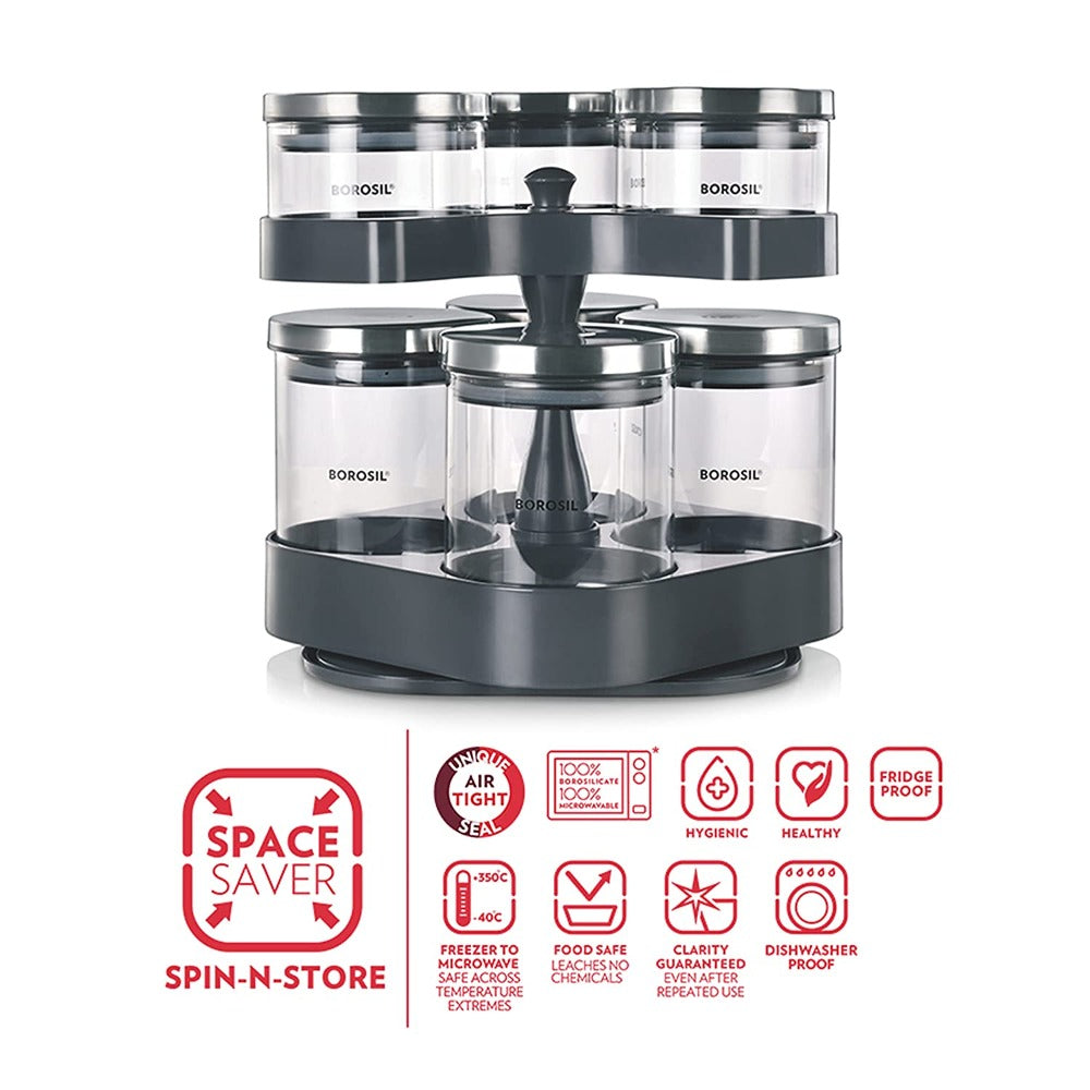 7 क्लासिक ग्लास जारसह बोरोसिल स्पिन एन स्टोअर ट्रे | पारदर्शक | 8 पीसीचा संच