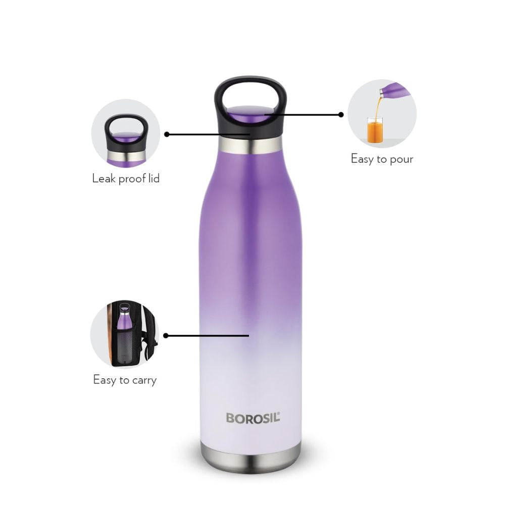 बोरोसिल स्टेनलेस सील हायड्रा कलरक्रश 700 एमएल व्हॅक्यूम इन्सुलेटेड पाण्याची बाटली | व्हायलेट | 1 पीसी