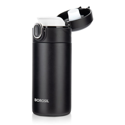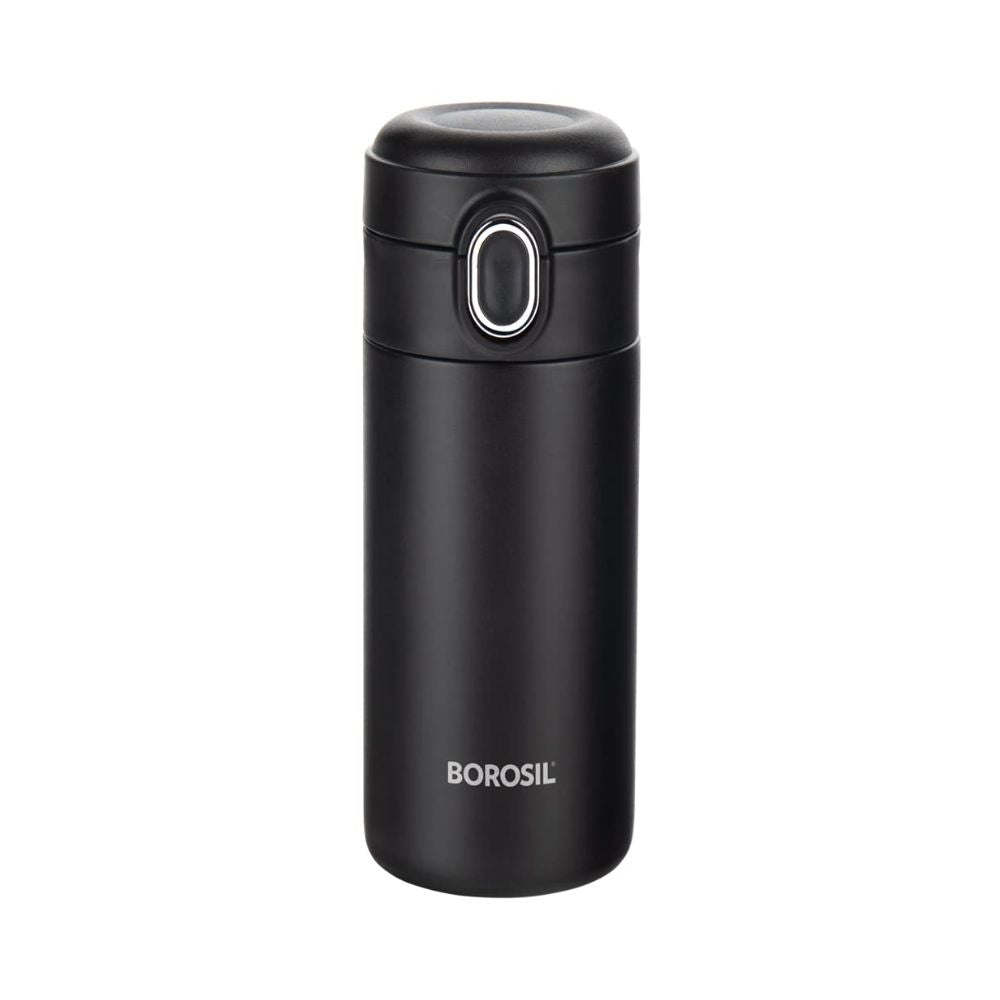 बोरोसिल स्टेनलेस स्टील हायड्रा ट्रॅव्हलर 300 एमएल व्हॅक्यूम इन्सुलेटेड मग | काळा | 1 पीसी