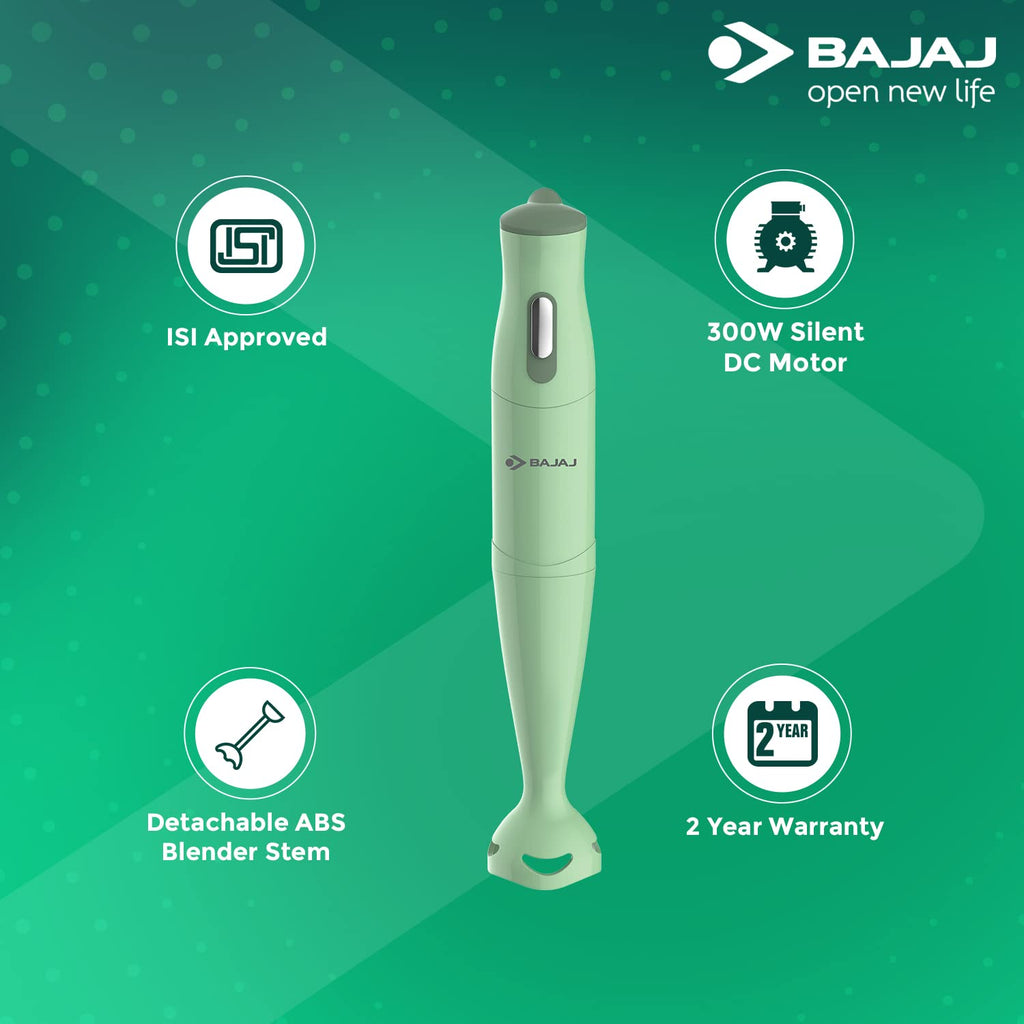 Bajaj HB 20 300 Watts Hand Blender | Silent DC Motor | Green