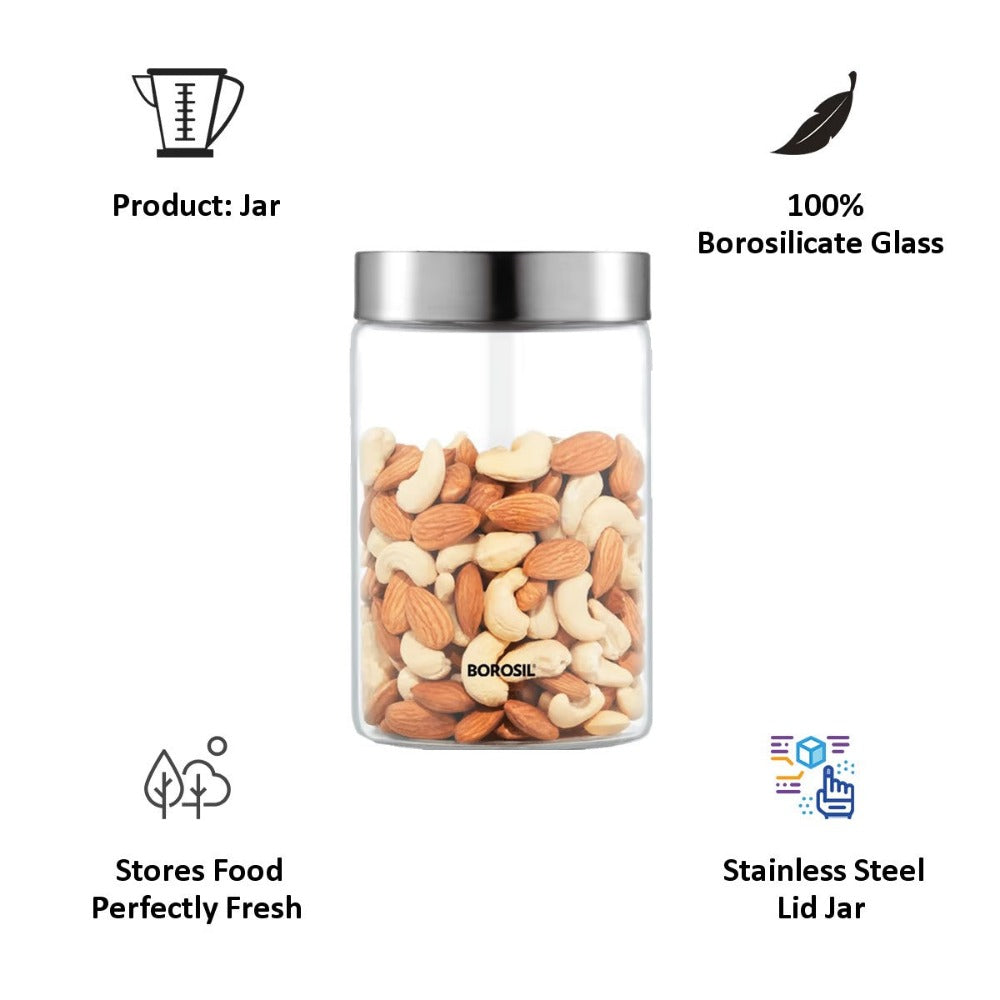 Borosil Endura Storage Glass Jar with SS Lid - 1