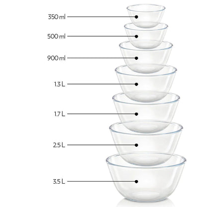 • MADE OF THE BOROSILICATE GLASS: Borosil’s entire range of mixing and serving bowls is made of borosilicate glass, which is extremely temperature resistant (-20°C in the freezer to 350°C in the oven) and extremely tough - so it can withstand daily use in your kitchen.