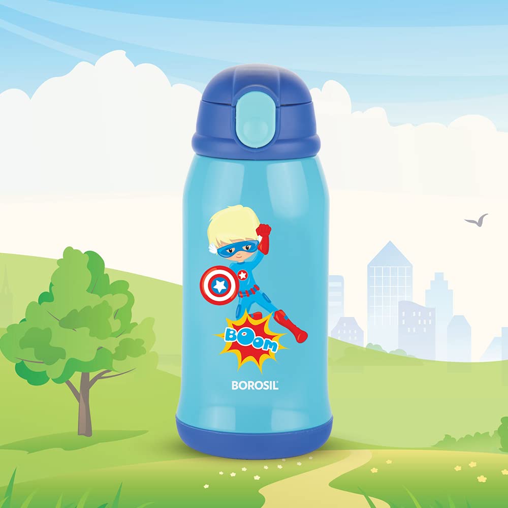 - Borosil Superhero Stainless Steel Kids Bottle is perfect for your little superhero!
