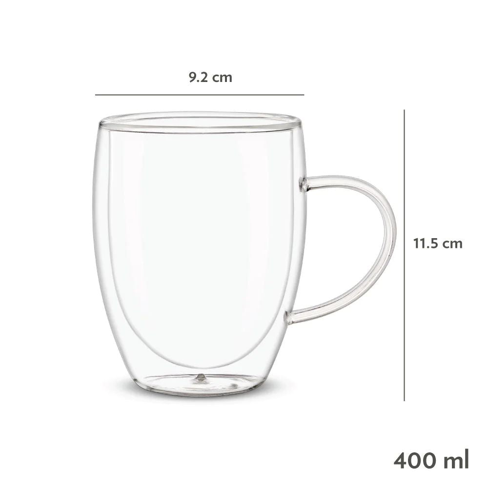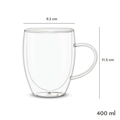 Borosil Mia 400 ML Double Wall Glass Mug | Transparent | Set of 2 Pcs