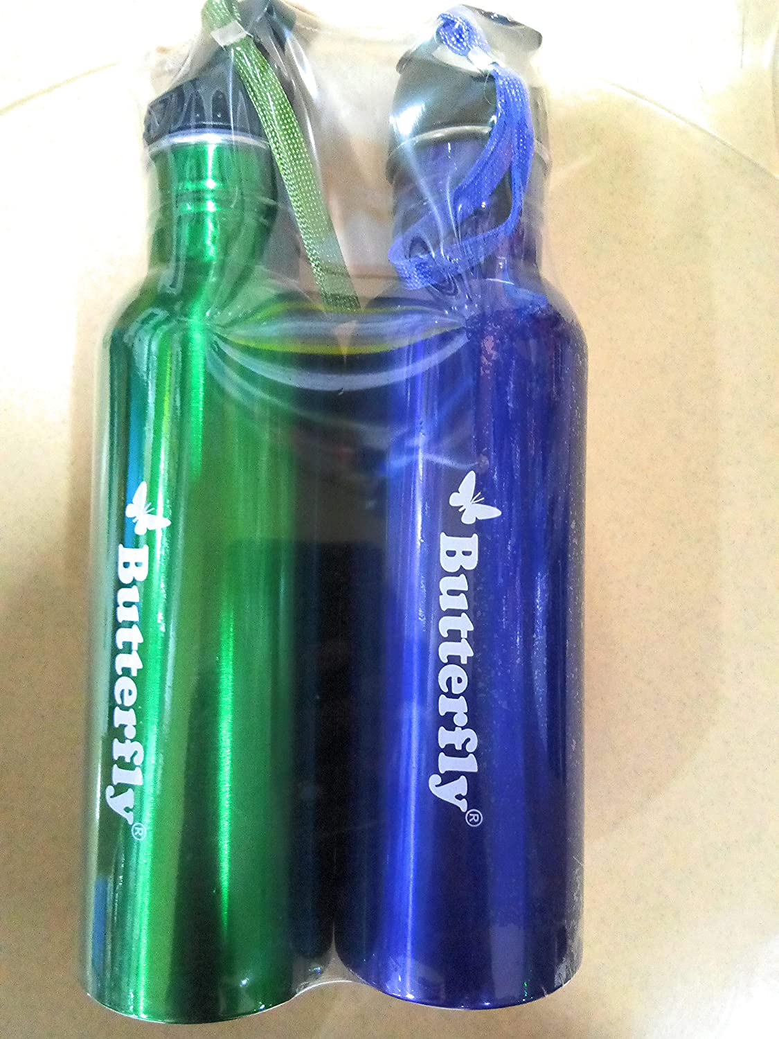 butterfly stainless steel water bottles (multicolour, 0.75l)-set of 2 pieces