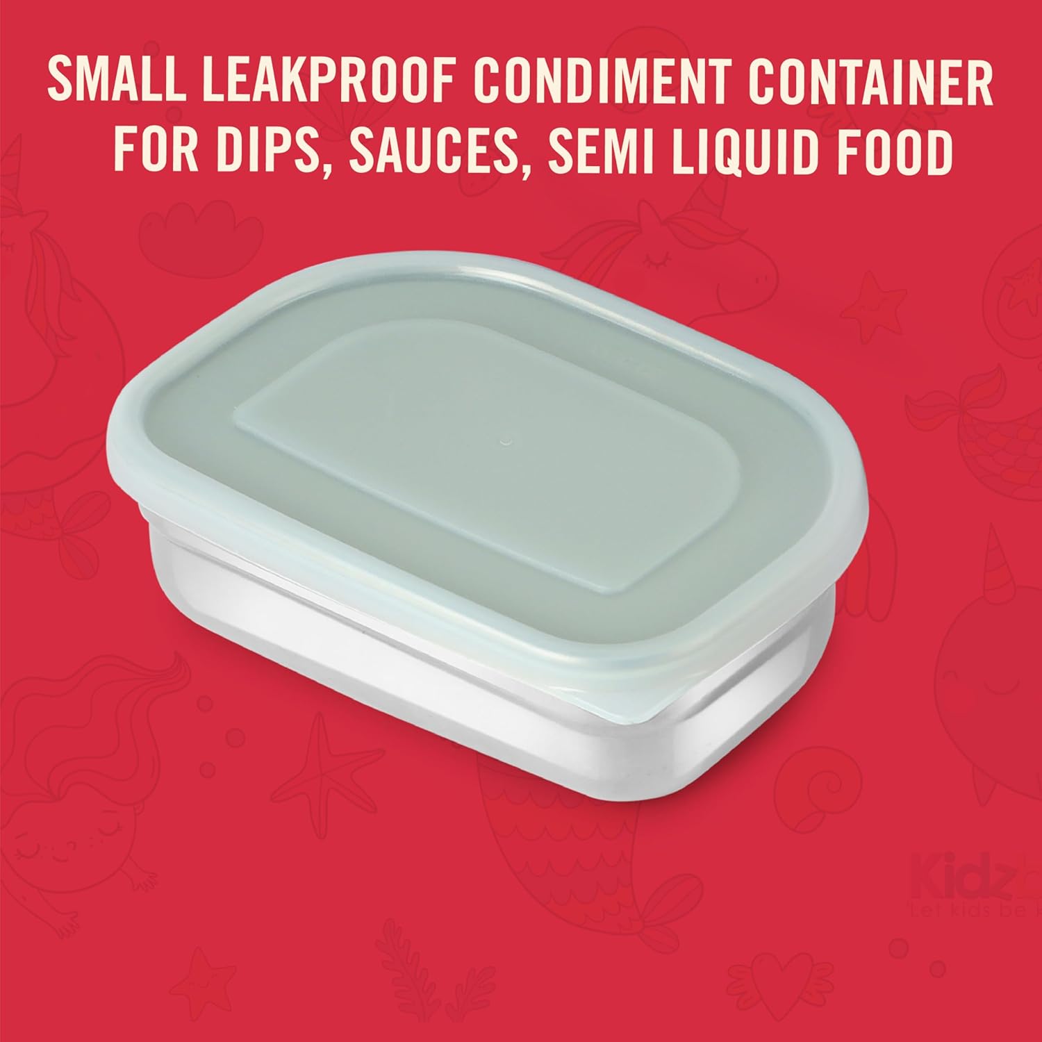 - LEAK-PROOF ASSURANCE💦: Equipped with clip locks🛅 and silicon washer in the lid making it Leak-proof. Now you give your child semi-liquid food items like sauces, dips, jams, chutneys without having to worry about staining their Backpacks🎒.