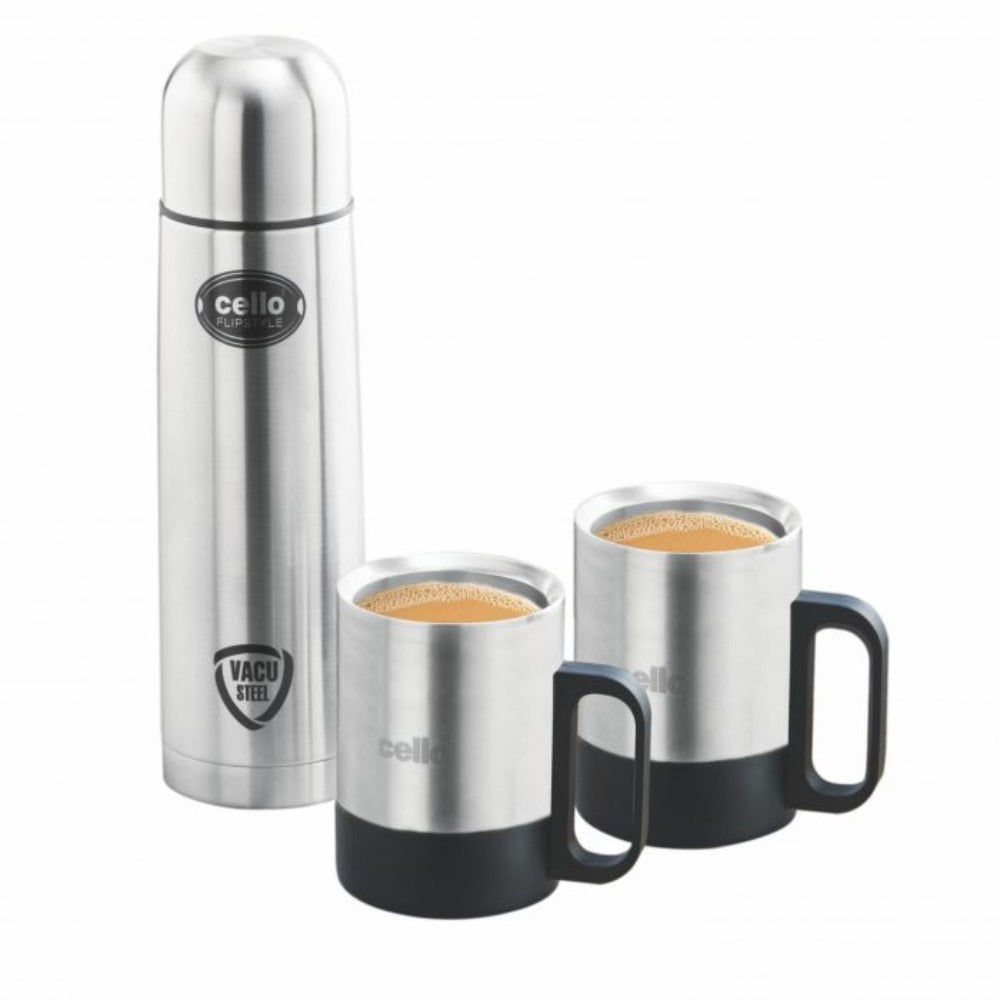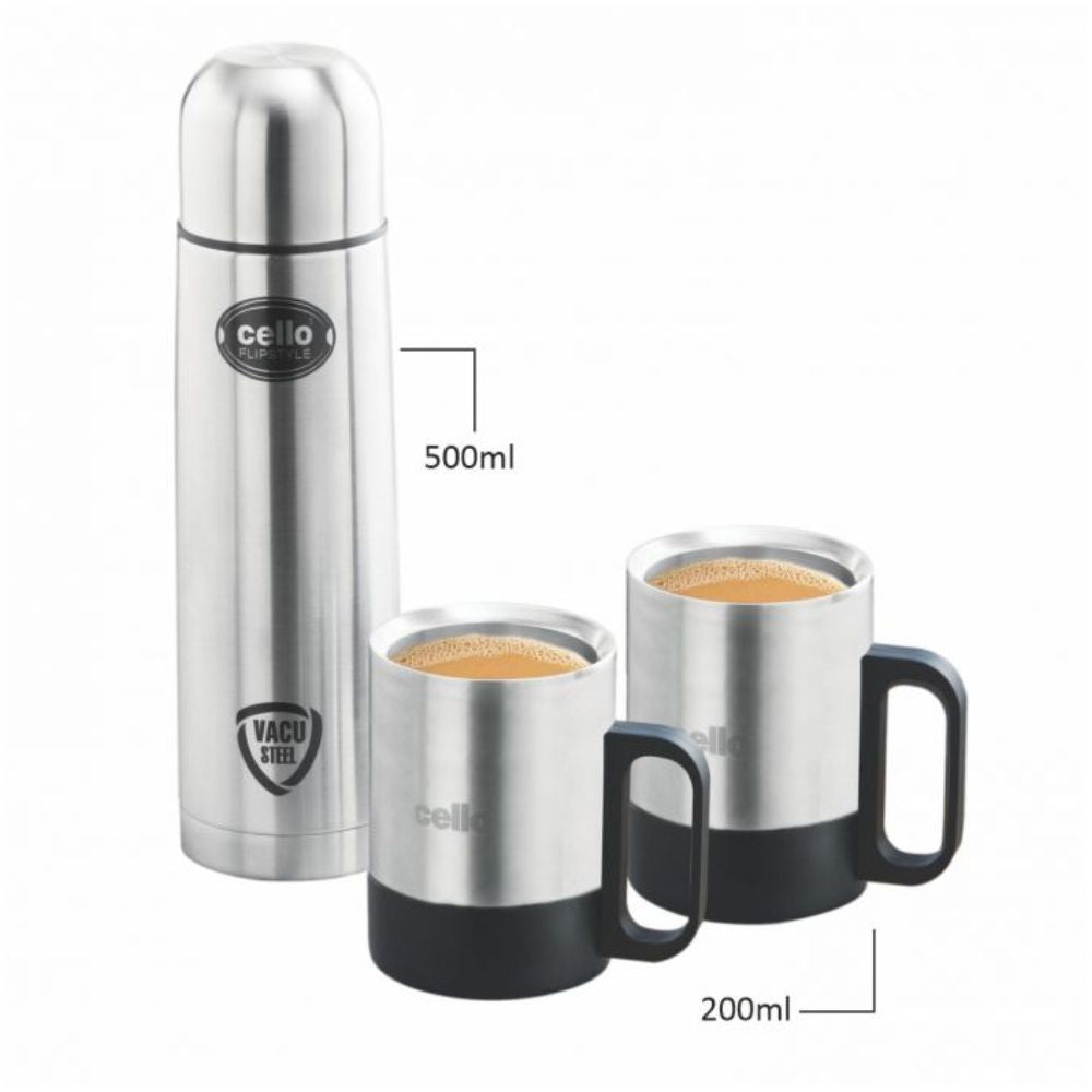 Cello Stainless Steel Classic Gift Set - 500 ML Flask + 200 ML Mug - 3