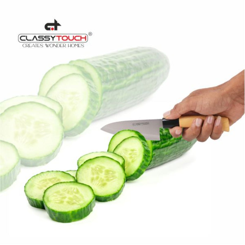 - The high-quality knife features a superior high-carbon stainless-steel blade with a razor-sharp edge which helps promote reliable cutting accuracy and precision results. Sharpen the blade as necessary to maintain a sharp edge for safe and efficient use.