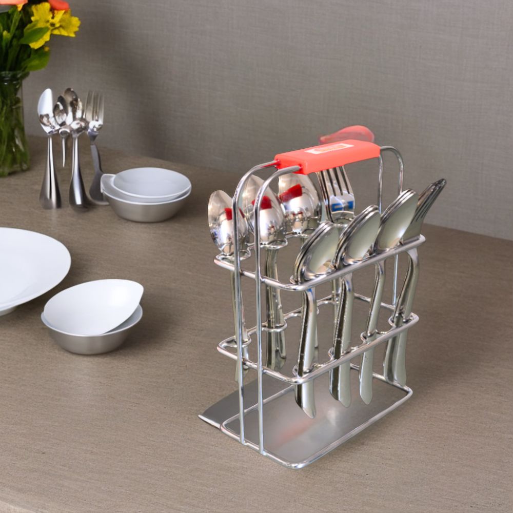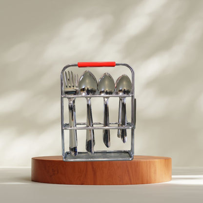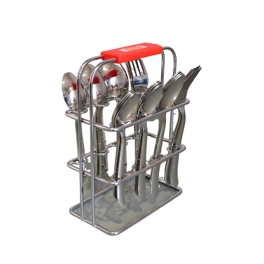 Decent Dazzle Stainless Steel Cutlery Set with Stand | Set of 24 Pcs