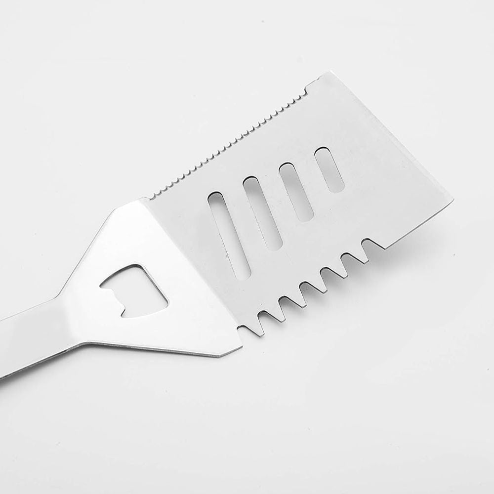 Flareon 4 in 1 Chameleon Spatula for Charcoal Briquettes Barbecue | Silver | 1 Pc