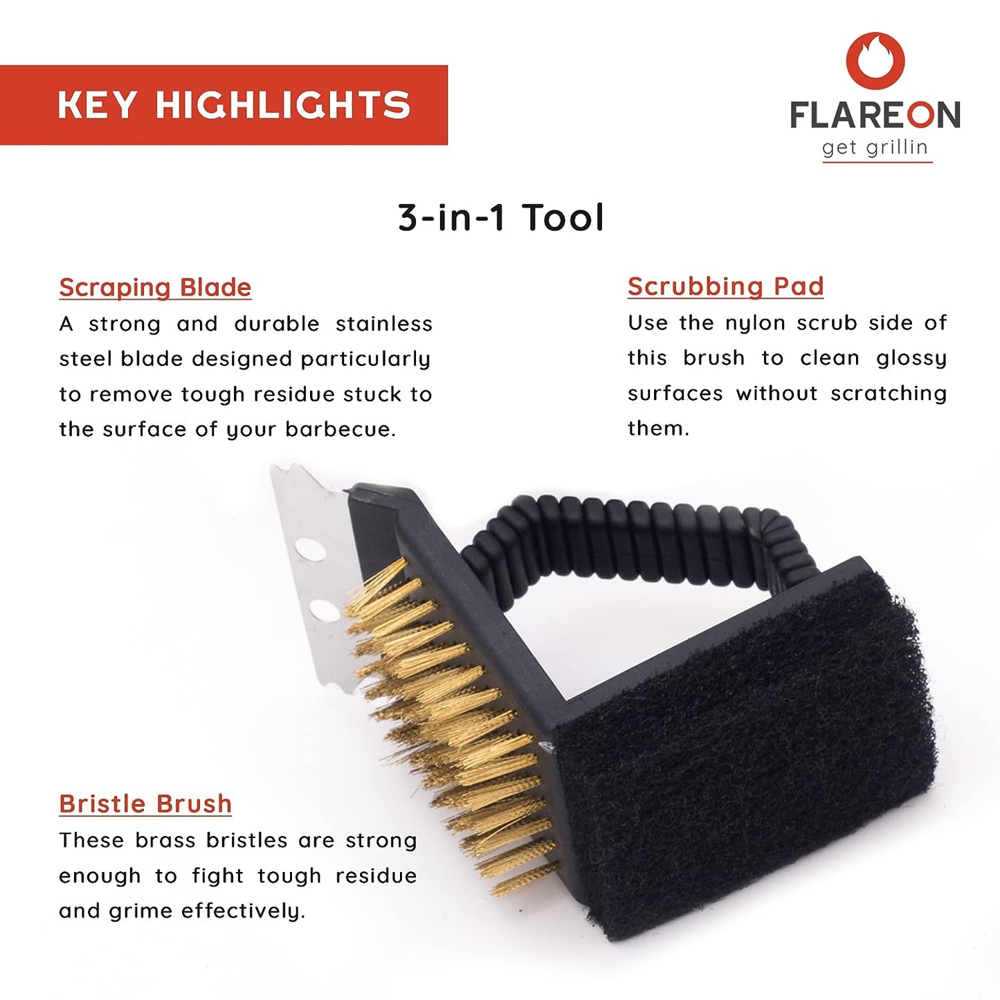 - The brush has 3 different sides, each with its own cleaning application that make it an indispensable tool for any barbecue set-up.