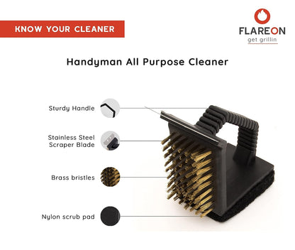 Flareon Handyman All Purpose Cleaner Brush for Charcoal Briquettes Barbeque (BBQ) Grills | Black