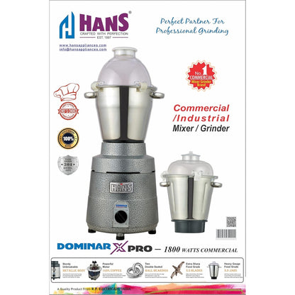 • Engineered & Made in India by the First and Most Trusted Commercial mixer grinder brand- HANS.