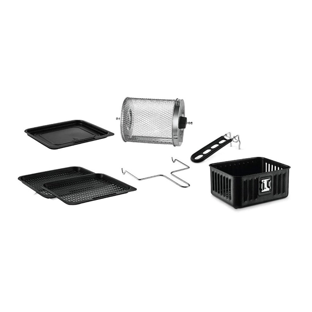 2.6 L rotisserie drum for large meals and a 4.6 L nonstick rectangular basket for efficient and healthy frying, grilling, baking, or roasting.