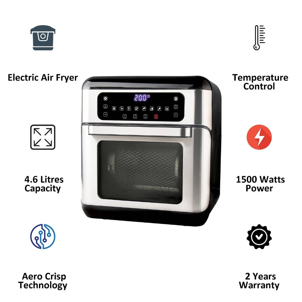 • Havells Air Oven Digi 4.6 Litres Electric Air Fryer and impress your guests with a variety of tasty food items. When your air fryer lets you control the temperature, your food can be cooked well.